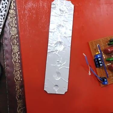 I 3D printed the face plate to hold the input and output jacks and the tone control. I cut a slot in the case to allow the components to slide through. The assembled face plate is then screwed to the case. I only have a a one color 3d printer currently , so the text for the front plate was done by printing embossed with black filament (PLA) for a few layers, then manually changing the filament to red for the remainder of the print. i reversed the print order for the little Bitzamp plaque.