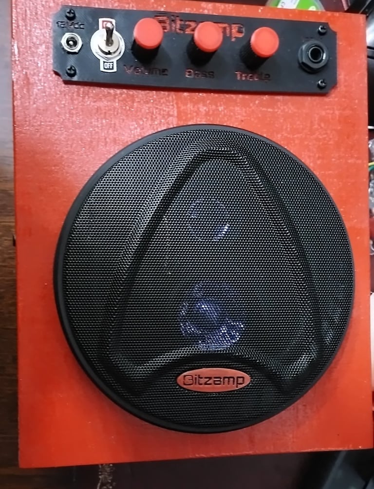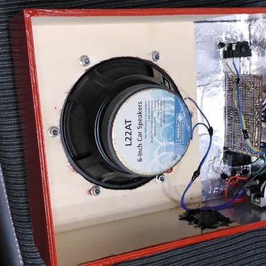 My collection of guitar amplifiers was stolen, leaving me needing a small practice amplifier. I had a 6" car speaker that used to be part of another project ( A modified "Google Home"" we called Gobby!). I also had a little TDA2030 amplifier kit hanging around. My wife had a wooden hobby craft box large enough to hold the speaker.