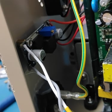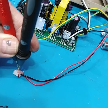 The power in a unmodified unit steps the voltage down from 24 Volts to about 18 Volts via resistors. For the Fan and Pump the resistors are inside as plastic box at the back of the unit. For the front Panel the resistors are located towards the rear of the power supply PCB.