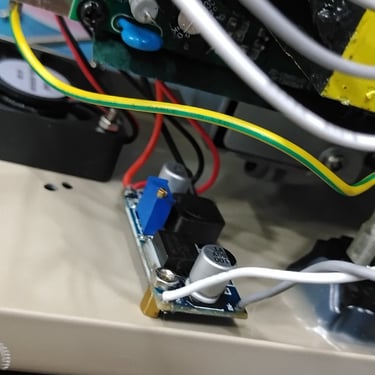I installed a second smaller buck converter to supply the fan and the controller PCB. To do this I took the output from before the power dropping resistors and fed it to a buck converter set for 12 volts. I am feeding the 12 volts from the buck converter to both the fan and the controller PCB.