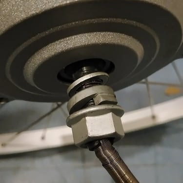 The supplied ready built wheel was only available for cassette gear sprockets, my bike has a freewheel. The cassette would be better as a 8-speed but my bikes twist grip gear selector is for 6-speed. I could change the shifter or install spacers and just limit the derailleur to not change to one of the gears. This rear wheel hub had about the same torque as the front hub wheel. So the decision was made for a front hub conversion. The bonus to a simpler front wheel conversion is that the forks do not often need spreading.