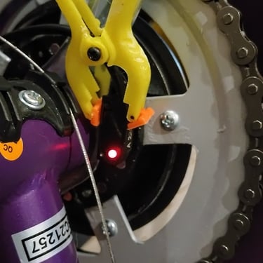 The down the tube pedal sensor was another good choice, although the supplied mounting bracket was not any use for me. The cable was just long enough for me to position it on the bottom bracket. I could 3d print some kind of custom clip to hold it in place. This would take time and a bit of trial and error. Instead I used epoxy to secure it to the metal work. I then added Sugru, which is moldable silicon glue. This is heat resistant, water resistant and somewhat flexible.