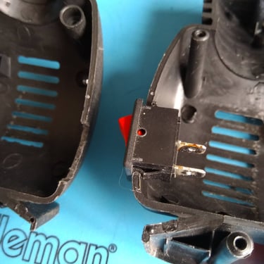 The other feature I wanted to add was a switch of some kind. I salvaged a rocker switch with 5 amp at 120 volt contacts on it from a dead piece of electronics. I had to cut out a suitable hole the press mounted switch. The current offload is around 4.5 amps, so I think it will be okay but it could fail.